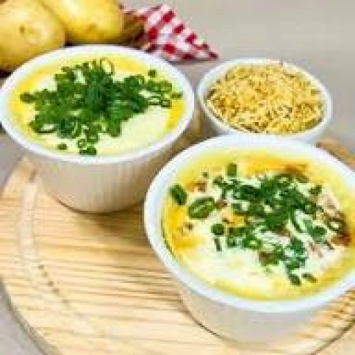 Caldo feito à base de aipim fresco e frango desfiado | Acompanha limão e torradas